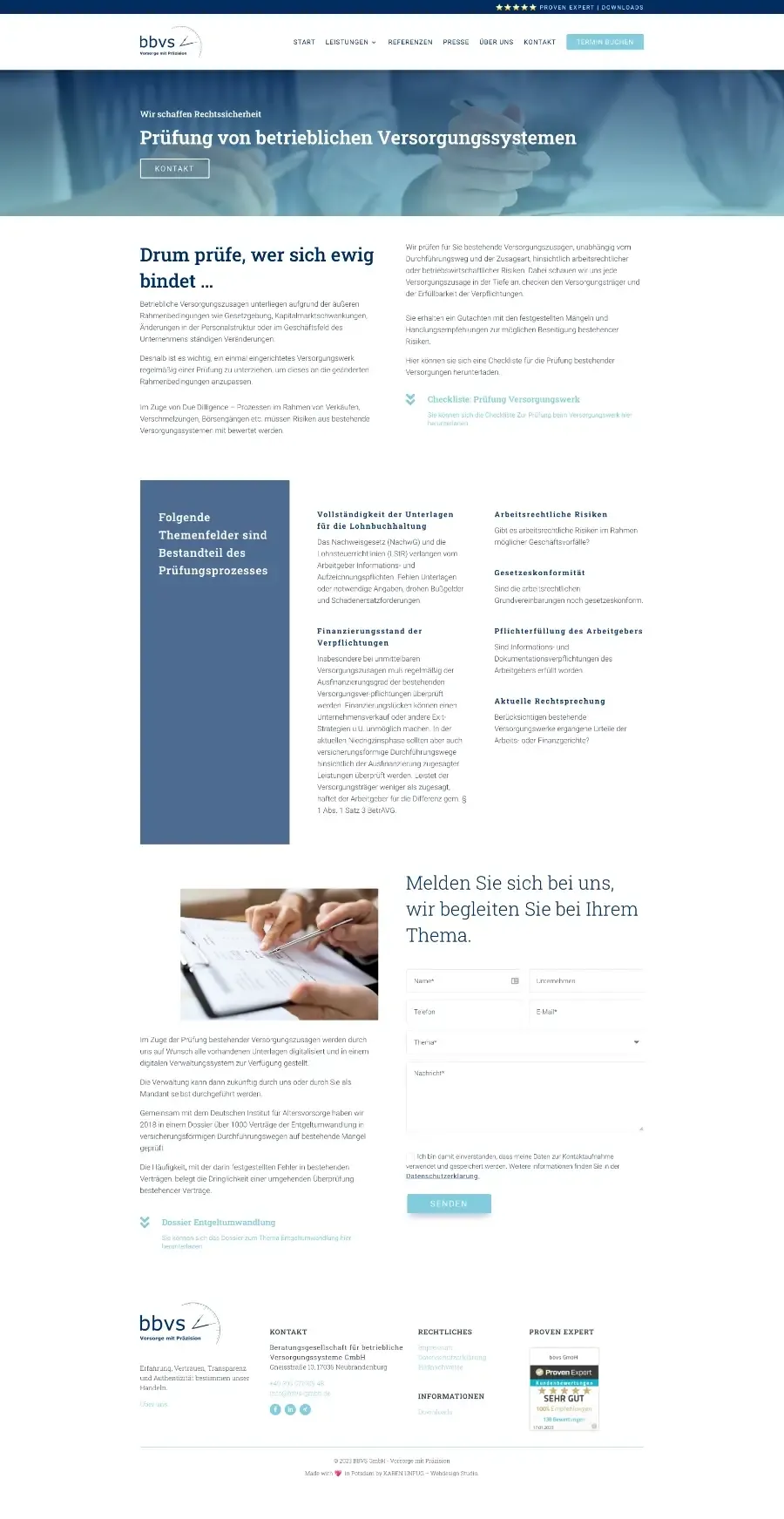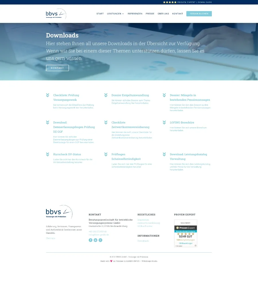 Die BBVS GmbH steht für fundierte Expertise in der betrieblichen Altersvorsorge. Für das Unternehmen haben wir eine Business-Website entwickelt, die die Kernkompetenzen klar und überzeugend darstellt. Im Fokus der Website stehen Präzision und Transparenz, um Arbeitnehmer und Arbeitgeber gleichermaßen anzusprechen. Mit informativen Inhalten und einer ansprechenden Gestaltung zeigt die Website, wie die BBVS GmbH ihre Kunden bei der Planung und Umsetzung von Vorsorgelösungen unterstützt.