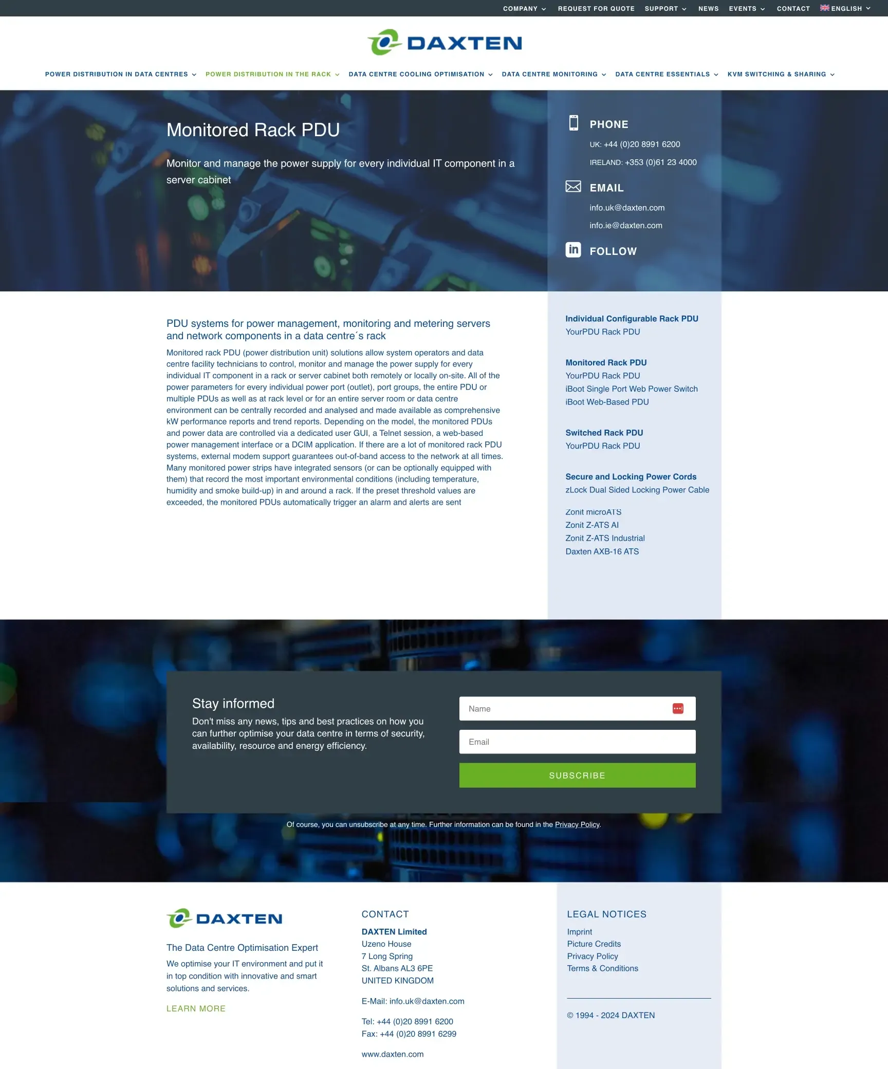 Für die DAXTEN GmbH, einen renommierten Anbieter von Lösungen für Datenzentren, haben wir eine komplett neue, moderne Website erstellt. Der Fokus lag auf einer mehrsprachigen Umsetzung, um die internationale Zielgruppe optimal anzusprechen. Ergänzt wurde die Website durch ein Blog-Modul, in dem News, Produktinnovationen und Event-Ankündigungen geteilt werden können. Zusätzlich haben wir eine nahtlose Integration eines E-Mail-Marketing-Tools umgesetzt, das DAXTEN dabei unterstützt, Kunden und Interessenten effektiv zu erreichen. Das Ergebnis: eine performante Website, die Nutzerfreundlichkeit und Funktionalität vereint.