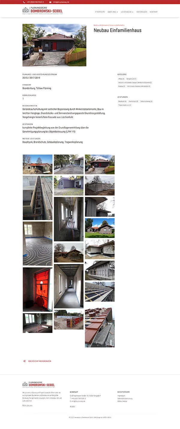 Das Planungsbüro Dombrowski Seidel in Rangsdorf erhielt eine moderne Business-Website, die ihre Dienstleistungen und Projekte optimal präsentiert. Der Fokus lag darauf, die Expertise und Erfahrung des Teams visuell ansprechend darzustellen und die Navigation für Kunden und Partner möglichst intuitiv zu gestalten. Die Website bietet eine ideale Plattform, um aktuelle Projekte, Referenzen und Informationen über das Unternehmen zu teilen – ein wichtiger Schritt für mehr Sichtbarkeit und Kundengewinnung.
